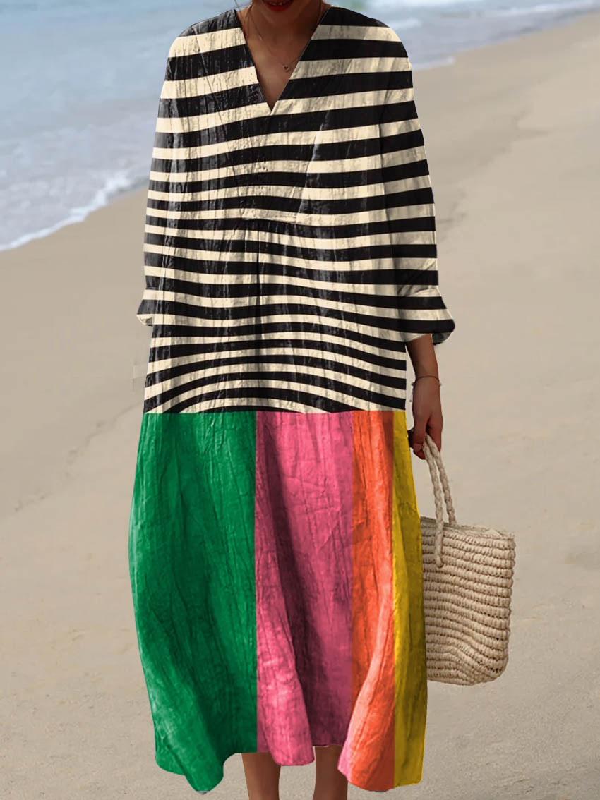 Women's Vintage Geometric Line Art Print Cotton Dress